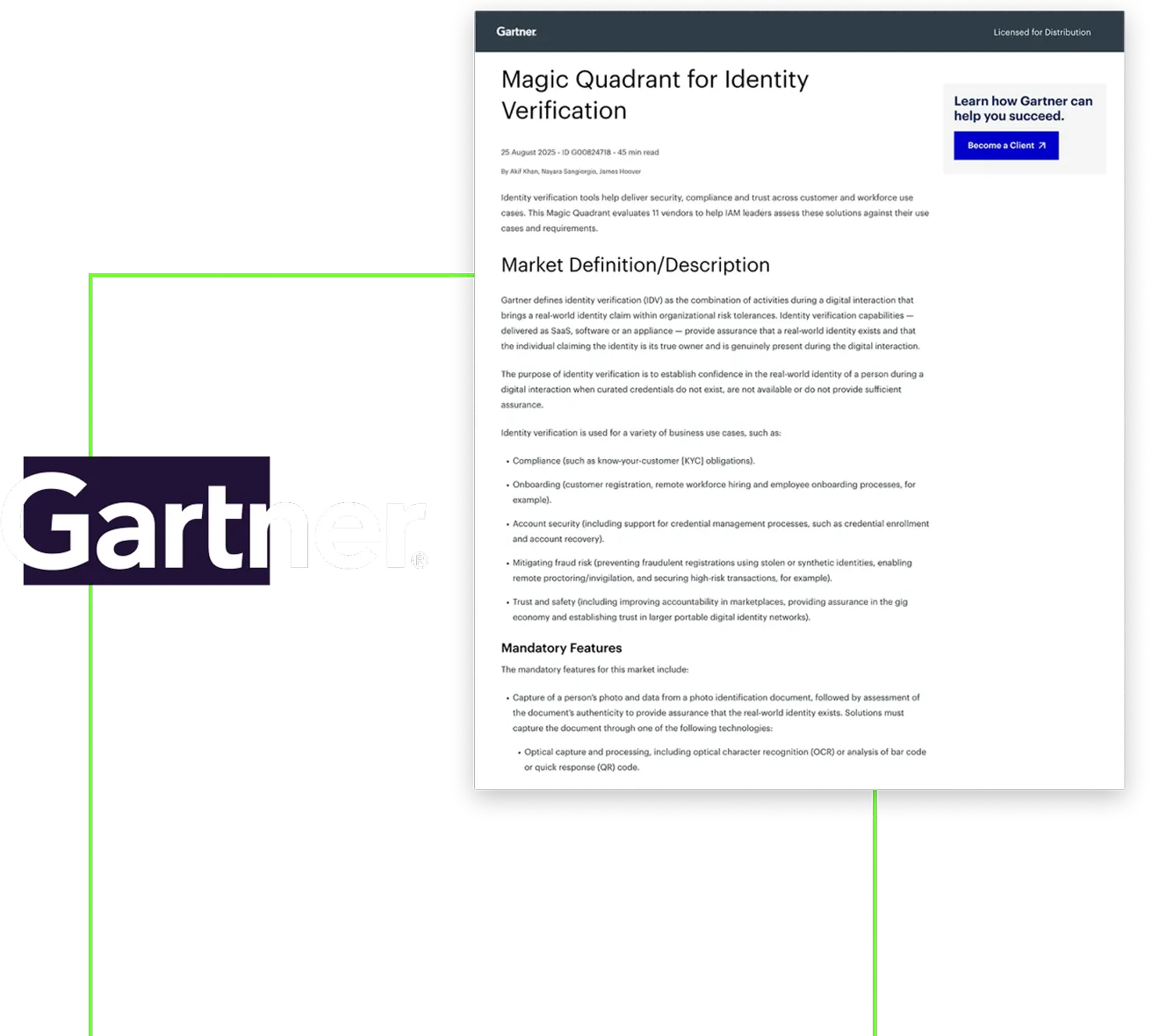 Download the Gartner report to discover key industry insights and make more informed decisions for your identity verification initiatives.
