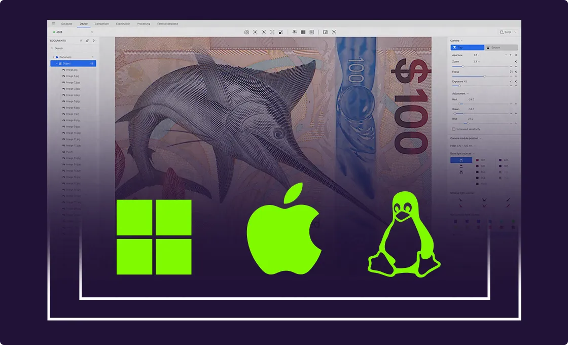 Regula 4308 funciona con el software Regula Forensic Studio (RFS), el cual permite obtener y procesar imágenes, así como generar informes forenses.