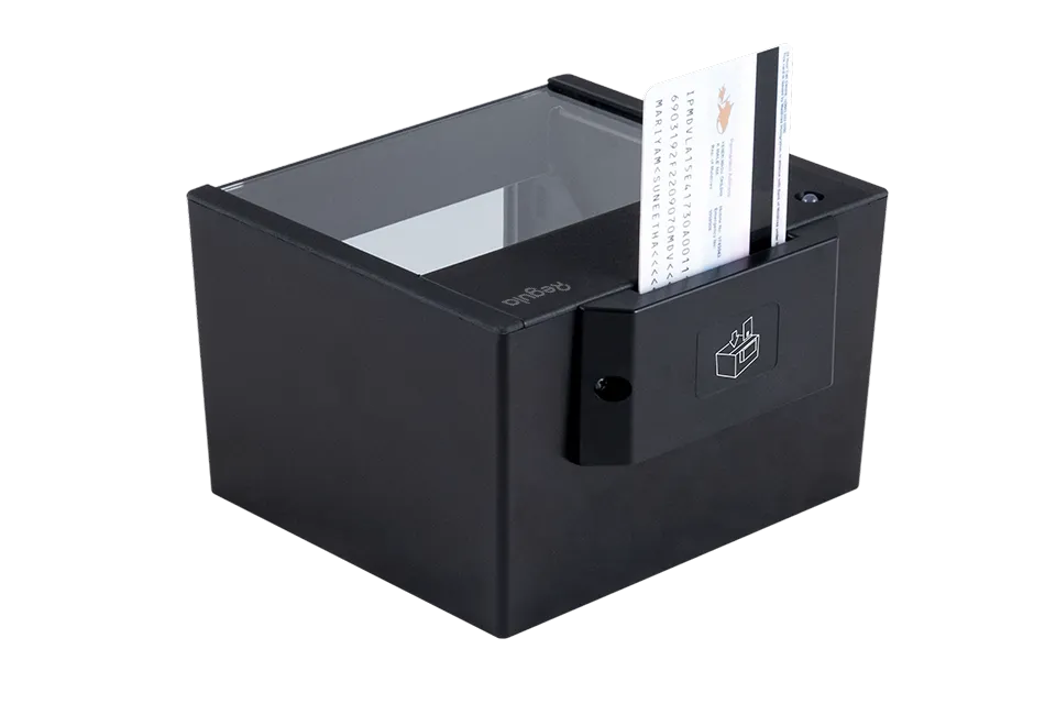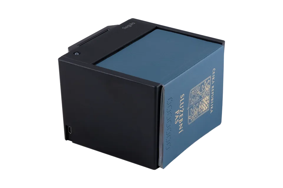Regula 70X7 es un lector de documentos de identidad de iluminación múltiple que captura imágenes en luz blanca, infrarroja, ultravioleta y blanca coaxial. El lector escanea automáticamente documentos en formato ID-1, ID-2, ID-3 y otros formatos de documento con un tamaño máximo de 87×128 mm.