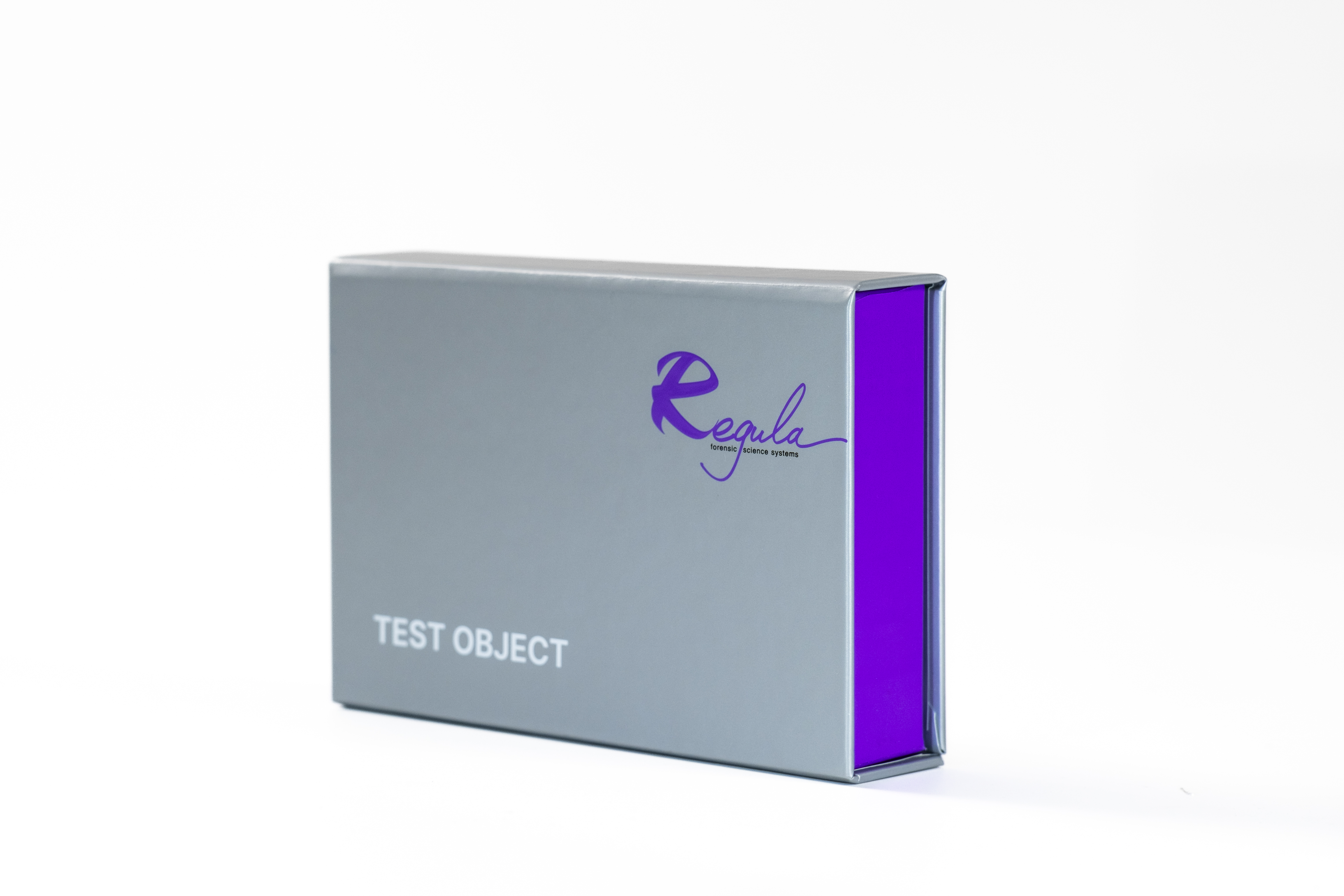 El objeto de prueba Regula 4300 contiene un holograma y elementos producidos con el uso de tintas modernas. Estos elementos se utilizan como elementos de seguridad en la producción de documentos seguros y billetes de banco.