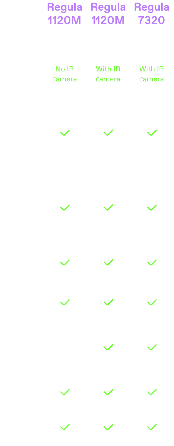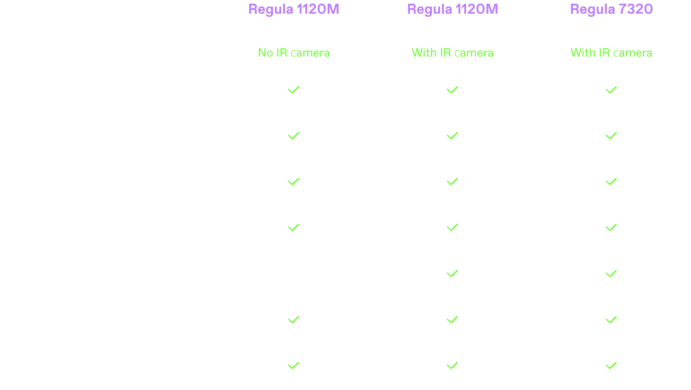 Depending on your security policies, internal device approval requirements, and the smartphones already in service, you can select the solution that best matches your operational workflow: Regula 1120M with any standard smartphone without an IR camera, Regula 1120M with any specialized smartphone equipped with an IR camera, or Regula 7320 — a fully integrated mobile workstation with a built-in smartphone featuring an IR camera. Compare the three options below.