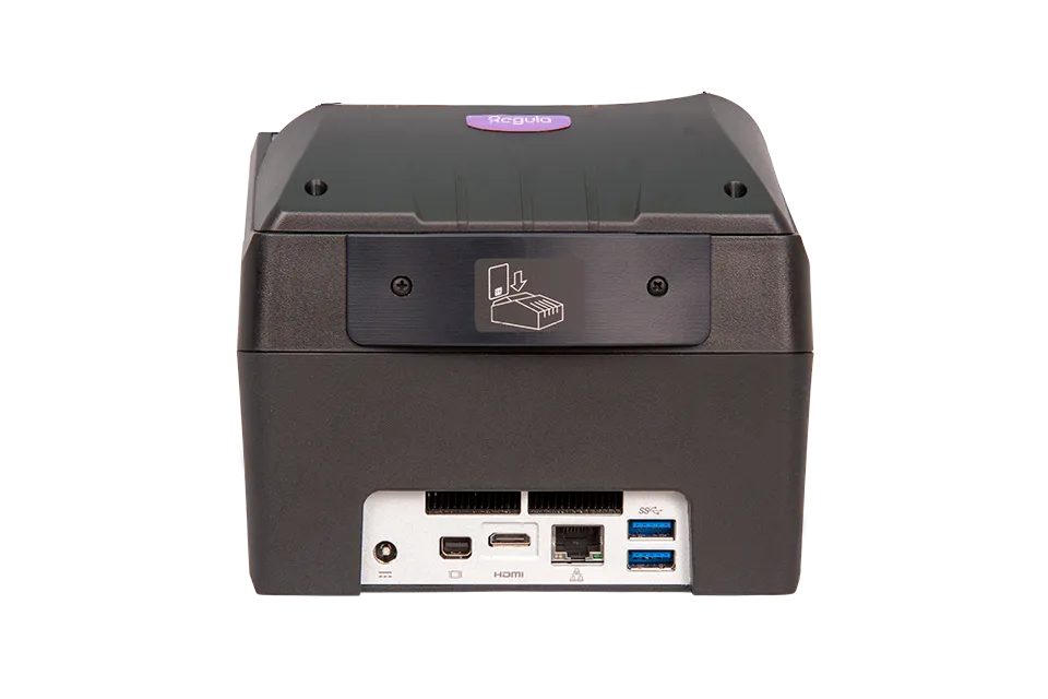 Thanks to the four USB ports, you can connect Spectral luminescent magnifier Regula 4177-5, Light table Regula 4167S or other devices. Depending on the configuration, it can also read RFID and SmartCard chips.