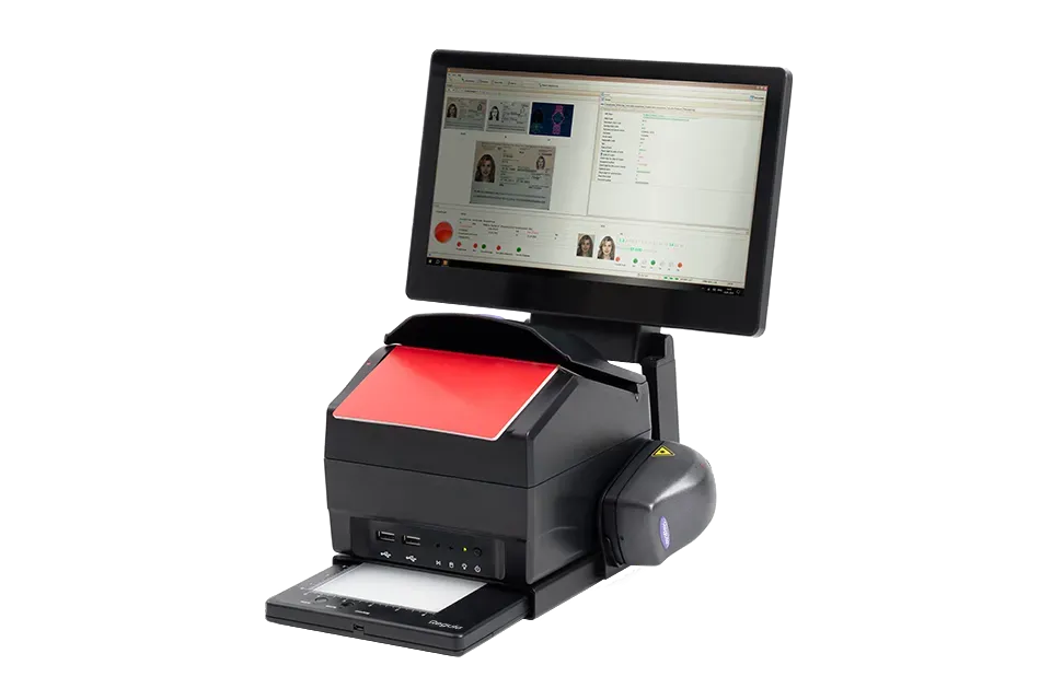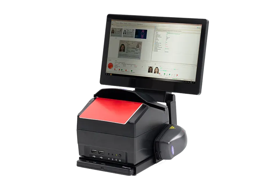 Being just 160 mm wide, Regula 70X9 conducts a surprisingly wide range of document checks. It reads and authenticates ID documents, such as passports, visas, driver's licenses, and more, and automates data entry. The processing happens right on the device with the help of the built-in PC, which makes it an independent unit and saves space.