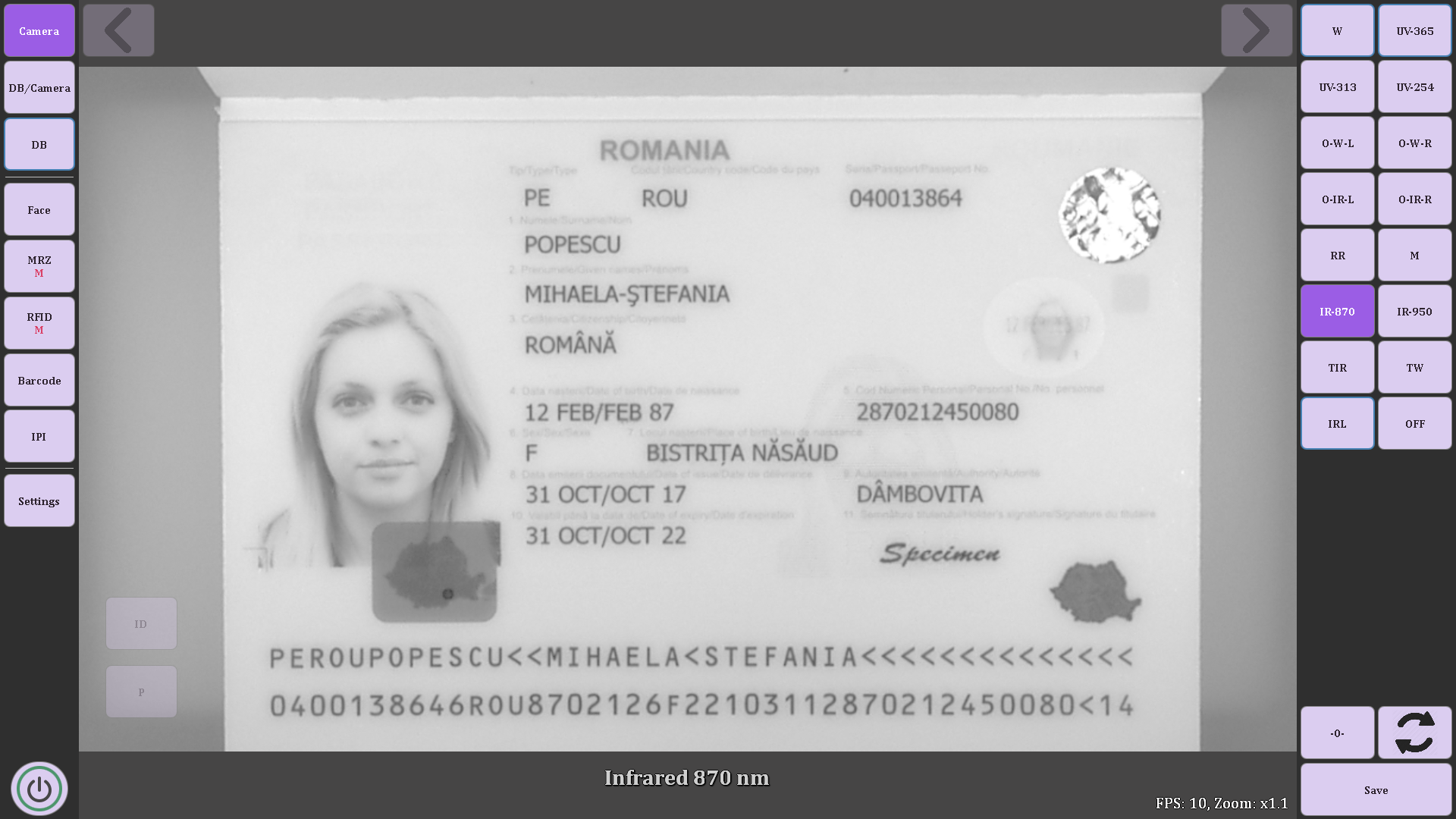 The built-in Regula Information Reference System precisely locates each security element, comparing the examined document with benchmark images for travel documents.
