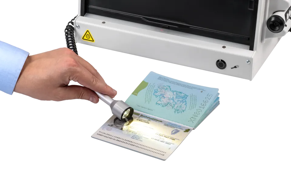 A whole collection of light sources in the range of 254-950 nm for document authenticity verification.