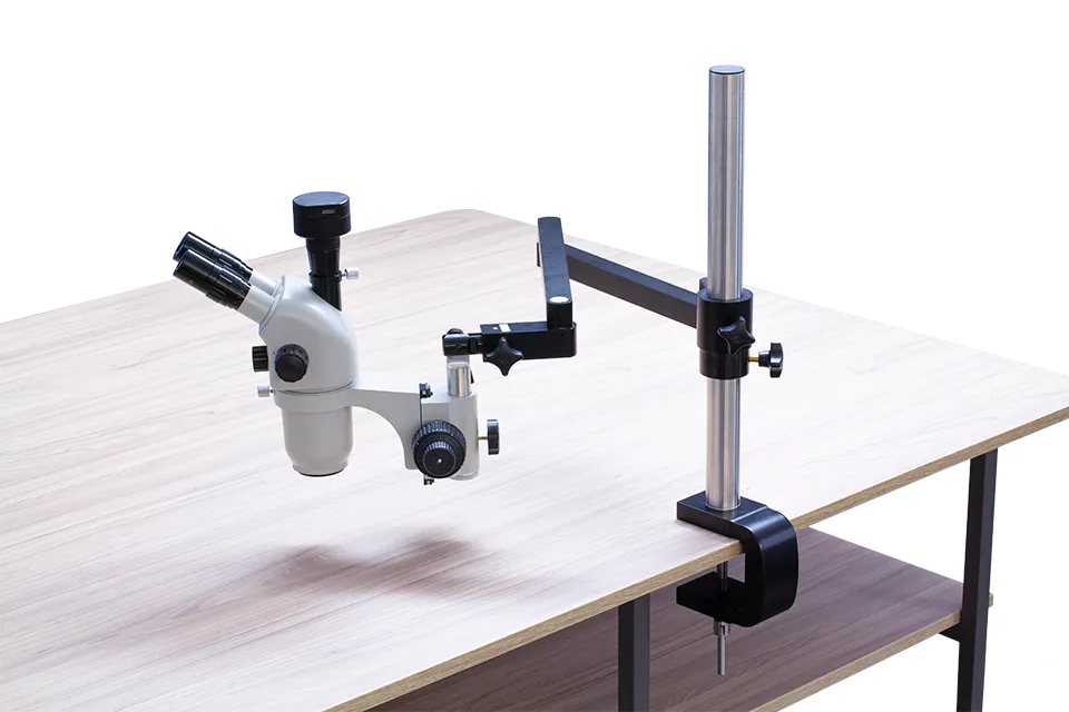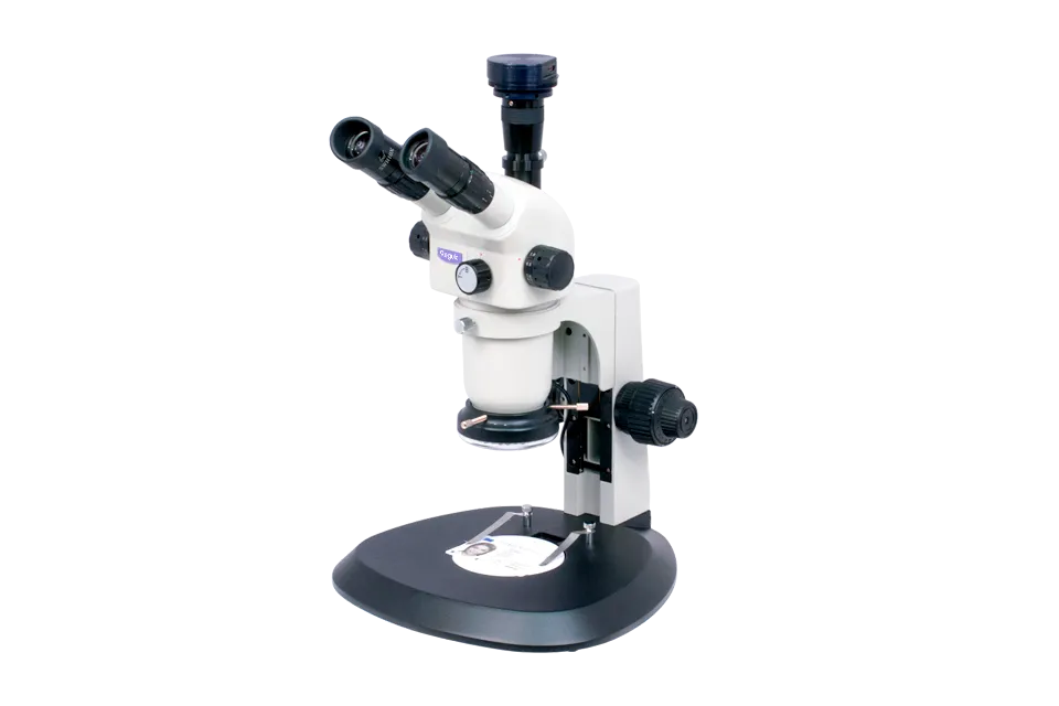 Obtains stereo images of examined objects with smooth magnification and coarse/fine focus adjustment.