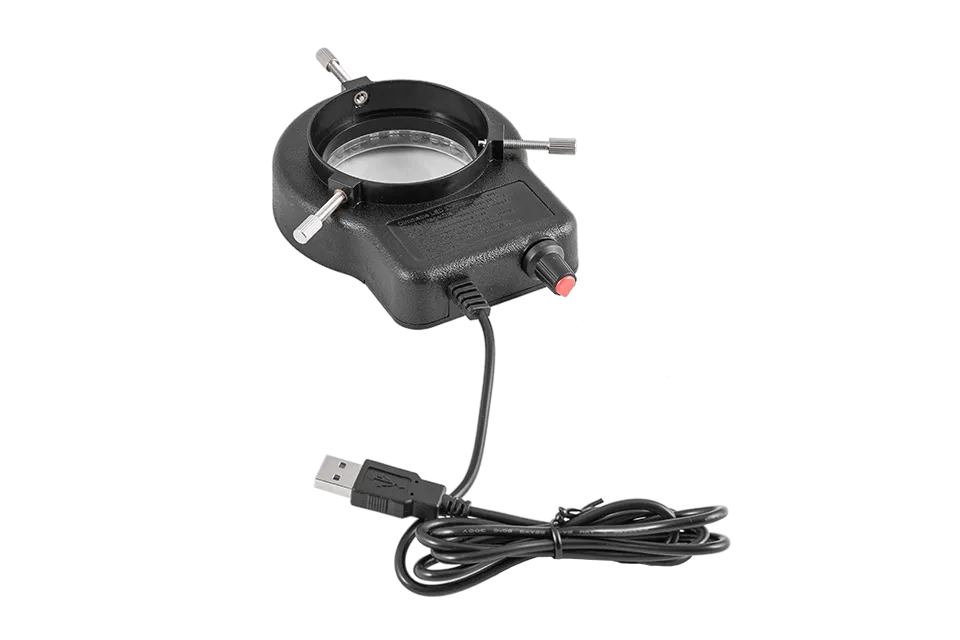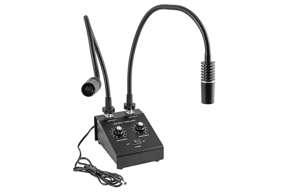 The ring light complex, as well as the optional transmitted and gooseneck light complexes, have variable intensity control.